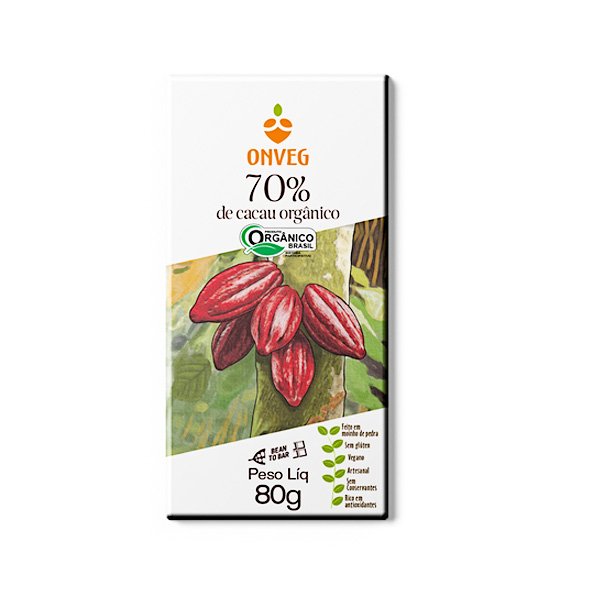 Chocolate 70% de Cacau Orgânico 80g Onveg