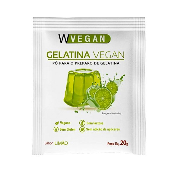 Gelatina Vegan 20g é um pó para preparo de gelatinas; simples e fácil de se fazer.