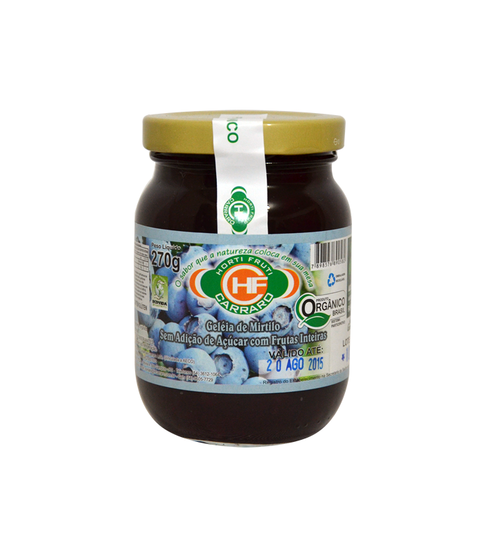 Ingredientes: Mirtilo, açúcar, pectina caseira orgânicos.