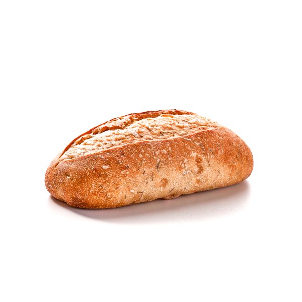 Ingredientes: Farinha de trigo branca*, água, fermento natural*, alecrim, azeite de oliva e sal.